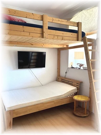 ca. 45 qm mit 1 Wohn/Schlafzimmer, 1 Schlafzimmer, Küche, Bad, WC, bis 3 Pers., Internet
