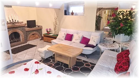 ca. 180 qm mit 2 Wohnzimmer, 4 Schlafzimmer, 3x Küche, 2x Bad, WC, Gruppenraum, Kamin, bis 9 Pers., Terrasse eingezäunt, Internet, Ilsenburg Drübeck, Hund / Haustier gestattet