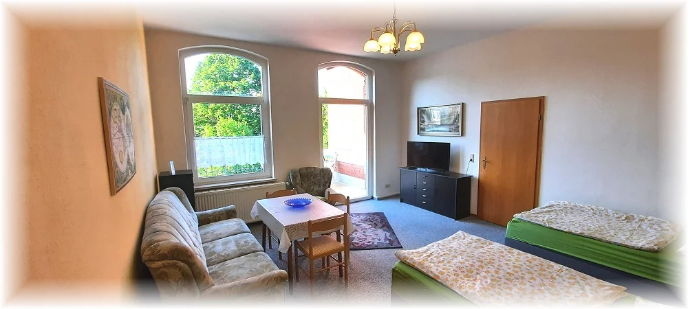 ca. 70 qm mit 1 Wohn/Schlafzimmer, 2 Schlafzimmer, Küche, Bad, WC, bis 6 Pers., Balkon, Internet, Waschmaschine, Parkplatz, Derenburg Halberstadt