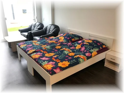 ca. 40 qm mit 1 Wohnzimmer, 1 Schlafzimmern, offene Küche, Bad, WC, bis 2 Pers., Internet,